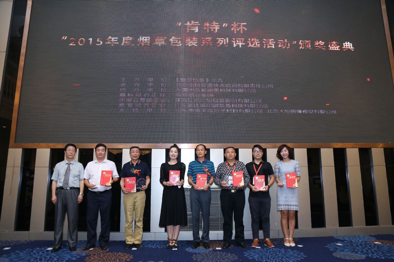 杭州品拓被評為“2015年度誠信煙包供應(yīng)商企業(yè)”杭州品拓市場部經(jīng)理沈佳琦先生(右二)上臺領(lǐng)獎